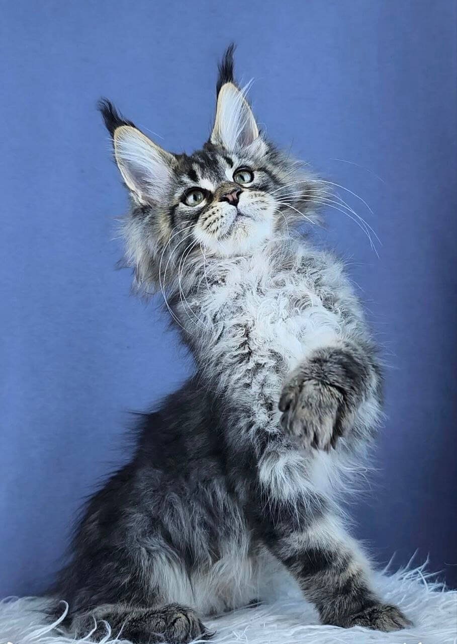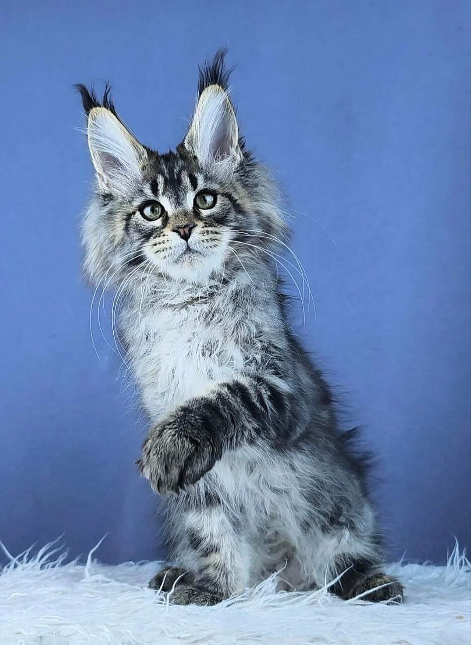 Hi, I’m Unicum a captivating Black Tabby Blotched Maine coon kittens for sale scotland with radiant yellow eyes that shine like little suns, a true heartthrob in a silky striped coat. I’ve got that classic blue Maine Coon kittens for sale look with a strong build, tall ears, and a fluffy tail, and my tabby markings give my coat beautiful depth and contrast. I eat Royal Canin Maine Coon and feel my best with a steady routine, good meals, and cozy spots where I can relax close to my people.