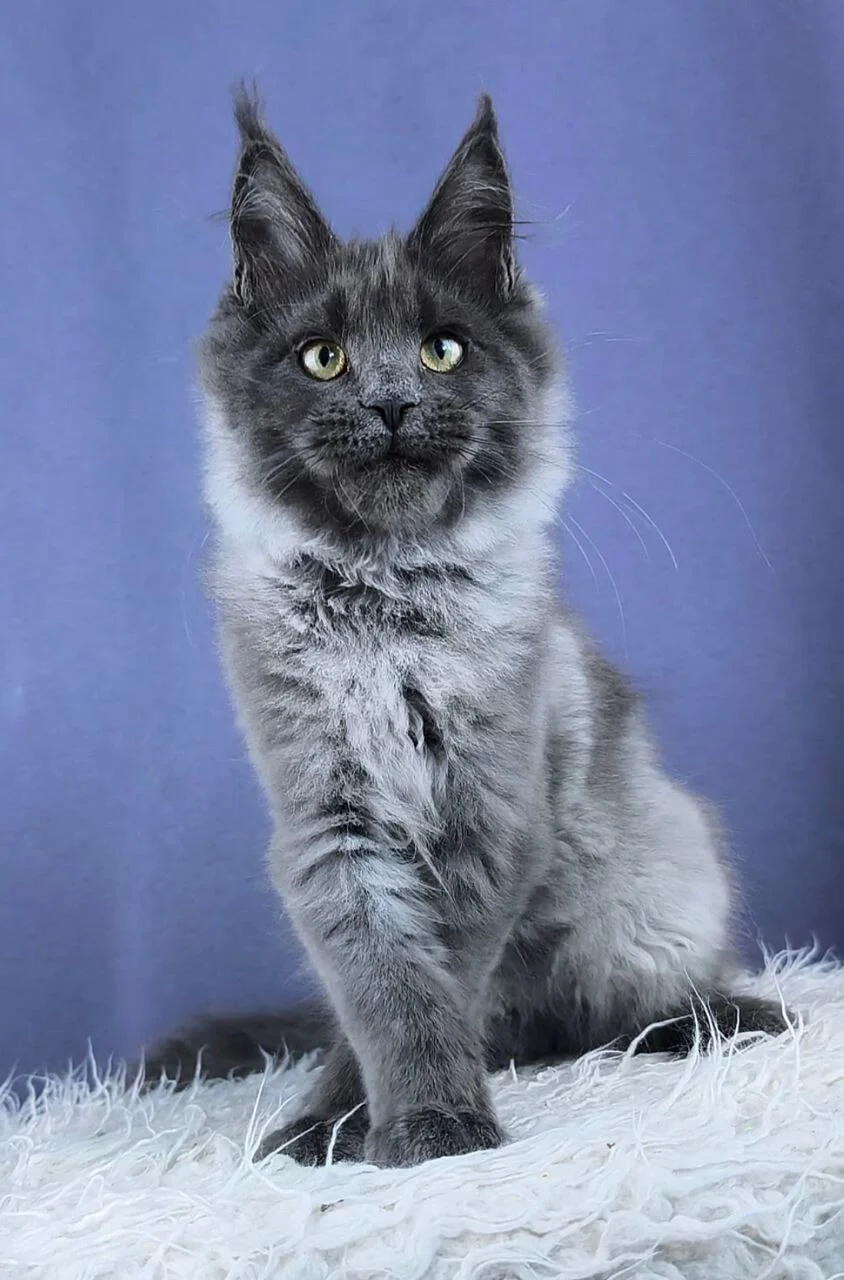 I come from Edith Maine Coone Cattery WCF-registered home cattery, where only Maine Coon kittens Scotland live in a big house with the family. With 9 years of breeding experience, Irina focuses on health, temperament, and beautiful type: strong bodies, great ears and ear tufts, and expressive faces. My parents are tested for HCM, PKDef, and SMA, are FIV/FeLV negative, and have regular heart ultrasounds, so I come from a carefully monitored, healthy line. Kittens here are raised indoors with daily attention, which makes us social, confident, and very attached to people. If purchased as a pet, I will come fixed, but breeding rights may be available for a suitable registered program. Blue Silver. Yellow eyes. Soft heart. Loyal by nature. If you can imagine me curled beside you, maybe I’m your kitten. If you feel it, I’m here.